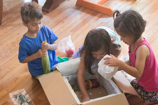 The KC kids weren't nearly as impressed with the packaging as they were with the box contents. They unpacked the whole thing shouting out ingredients and trying to match the food to its corresponding recipe. Looly claimed the experience of unpacking the box was like "Food Christmas." Not a bad reception from the 7-and-unders.
