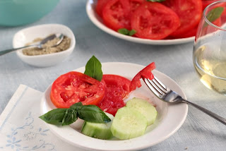 Tomatoes and Cucumbers with Basil Salt